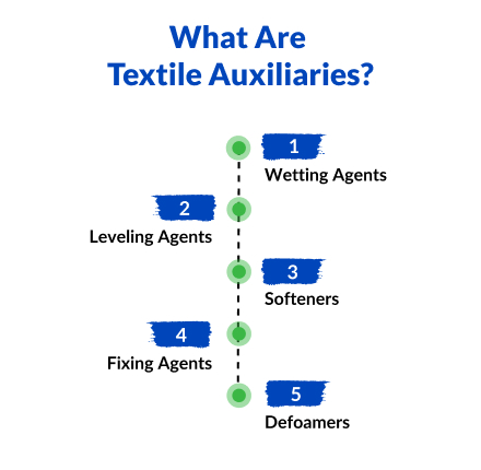 Textile auxiliaries are chemical formulations for fabric production converting raw fibers to marketable textiles. These agents solve problems such as uneven dyeing or rough textures to satisfy buyers worldwide. Apparel, home textiles and technical fabrics need auxiliaries, according to textile industry sources.